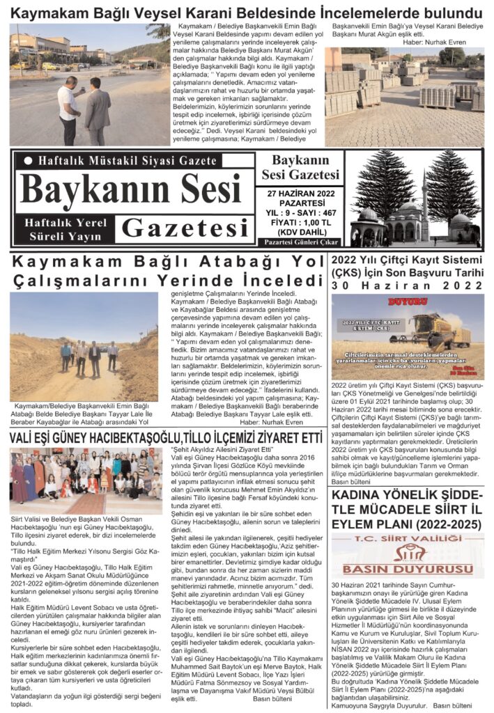 27.06.2022 Tarihli 467.Sayı Baykanın Sesi Gazetemiz Yayınlandı.