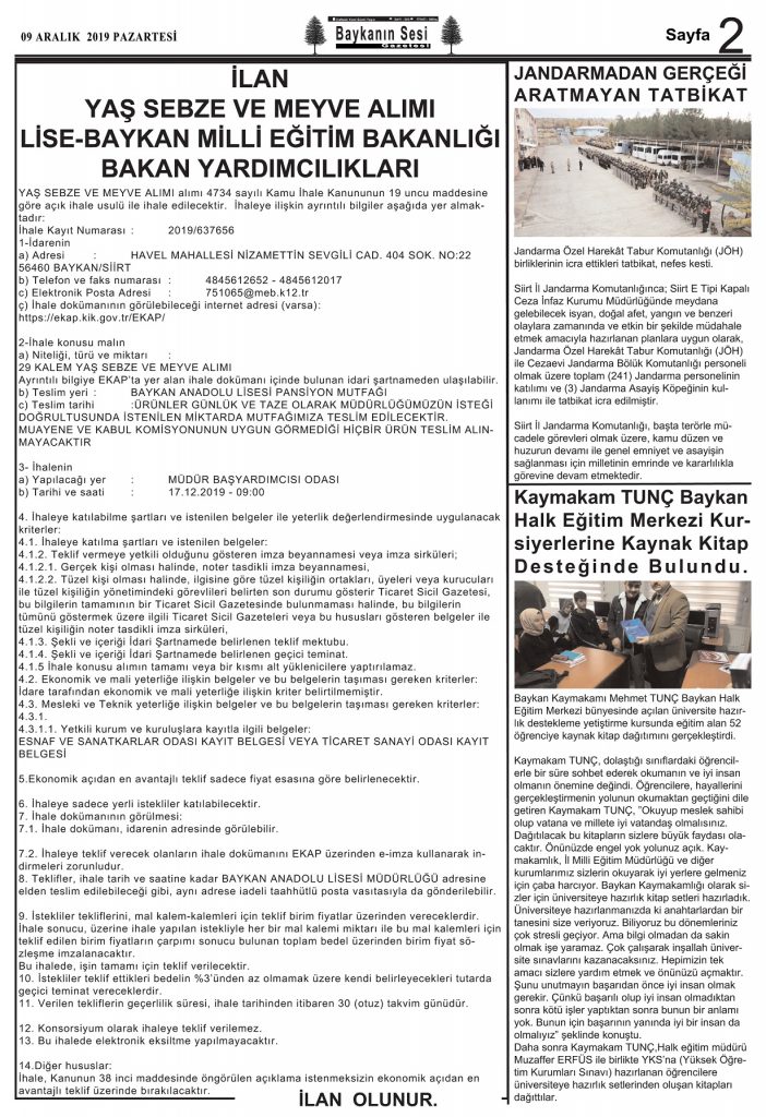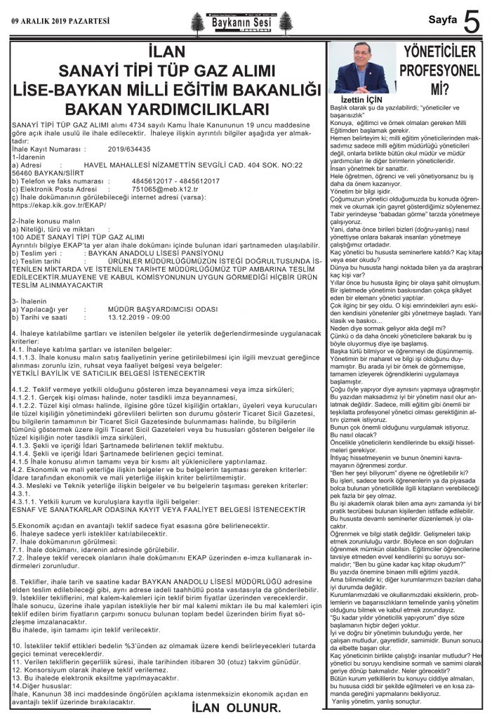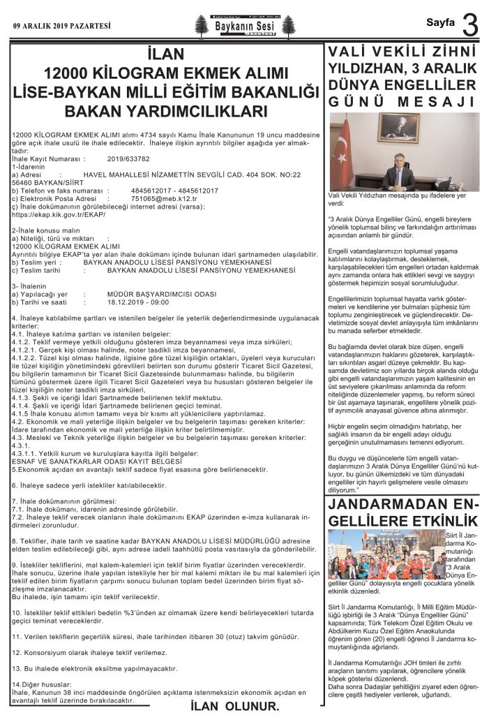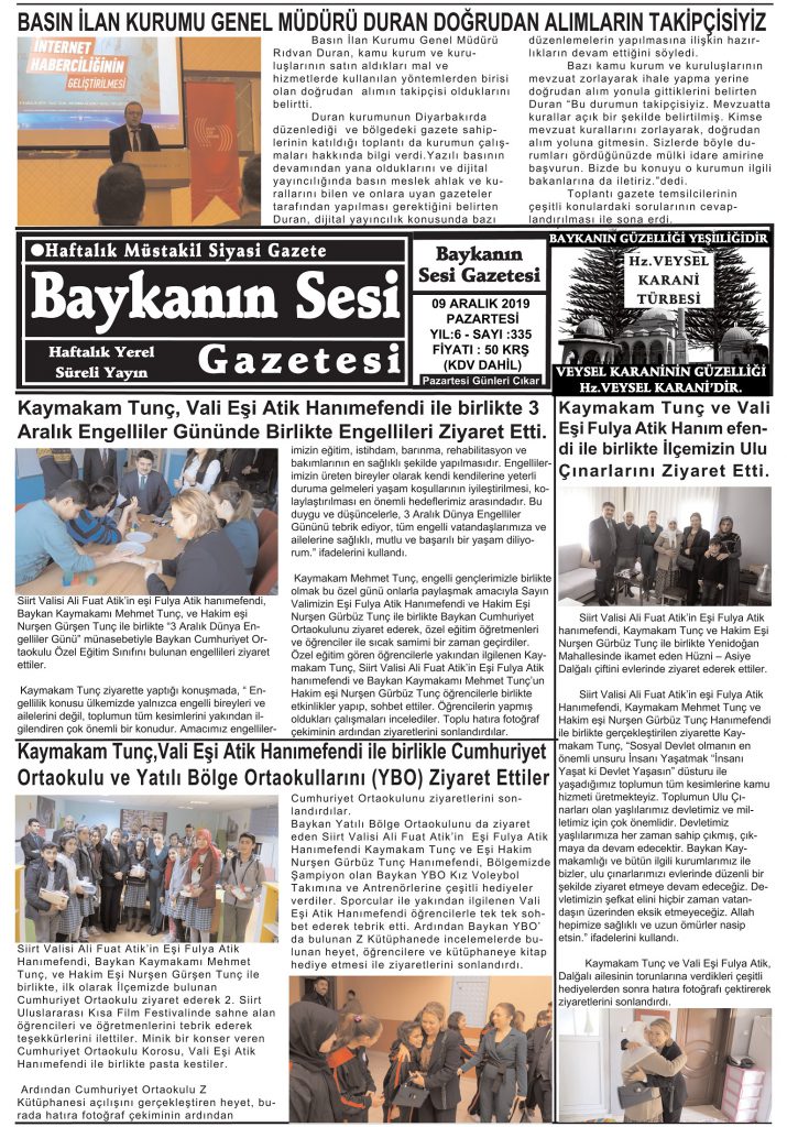 BAYKANIN SESİ GAZETESİ 09.12.2019 TARİHİNDE YAYINLANAN 335.SAYI