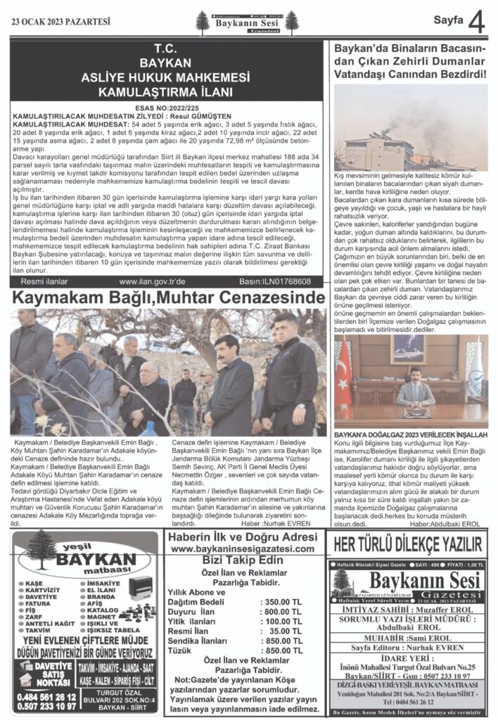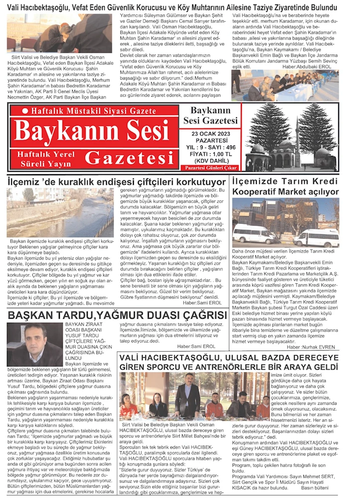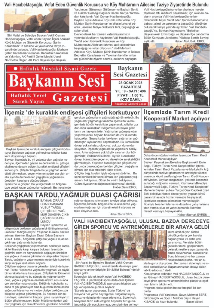 23.01.20223 tarihli 496.ci Sayı Baykanın Sesi Gazetemiz Yayınlandı.