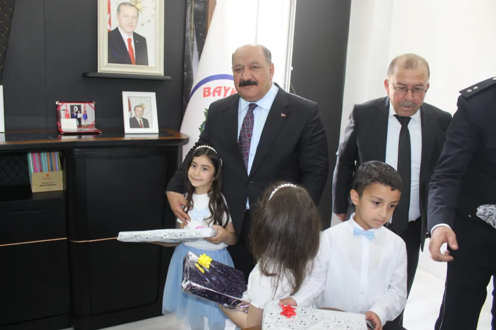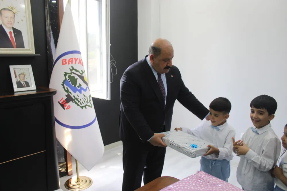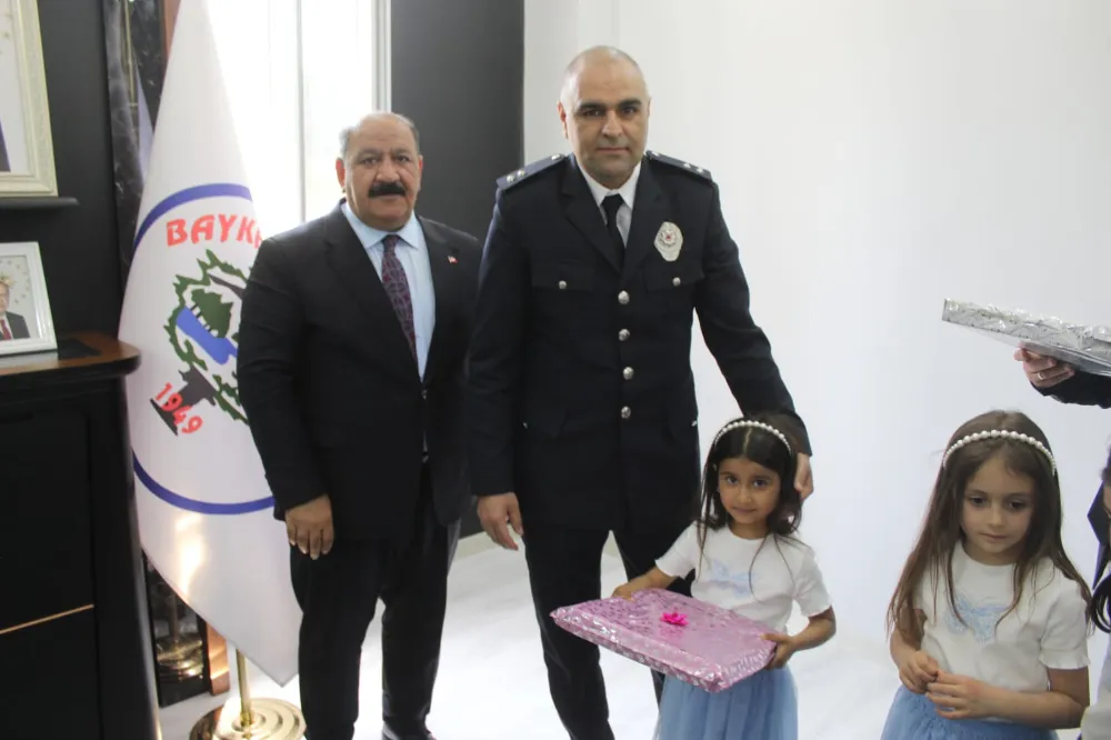 Baykan Belediye Başkanı Ekrem Erdem , 23 Nisan Ulusal Egemenlik ve Çocuk Bayramı dolayısıyla Yumurcaklar Anaokulu öğrencilerini makamında ağırladı. Çocuklar temsili olarak başkanlık koltuğuna oturarak taleplerini iletti.23 Nisan Ulusal Egemenlik ve Çocuk Bayramı dolayısıyla başkanlık koltuğuna Baykanlı minikler oturdu.Baykan Belediye Başkanı Ekrem Erdem , Yumurcaklar Anaokulu'nda eğitim gören öğrencileri makamında ağırladı. 23 Nisan Ulusal Egemenlik ve Çocuk Bayramı etkinlikleri kapsamında düzenlenen ve geleneksel hale gelen, çocukların temsili olarak yönetici koltuğuna oturmaları töreninde, kısa sürede olsa Baykan Belediye Başkanlığı koltuğunu emanet alan çocuklar, istek ve temennilerini Başkan Ekrem Erdem’e ilettiler.Ziyaretin sonunda Baykan Belediye Başkanı Ekrem Erdem, çocuklara çeşitli hediyeler verirken hatıra fotoğrafı çektirdi. Atatürk'ün tüm dünya çocuklarına armağan ettiği 23 Nisan Ulusal Egemenlik ve Çocuk Bayramı kapsamında Baykanlı miniklerle buluşmaktan memnuniyet duyduğunu belirten Başkan Ekrem Erdem, Yarının büyükleri ve yöneticileri olacak yavrularımız, ülkemizi daha güzel günlere taşıyacaklar. Tüm dünya çocuklarının 23 Nisan Ulusal Egemenlik ve Çocuk Bayramı'nı kutluyorum dedi