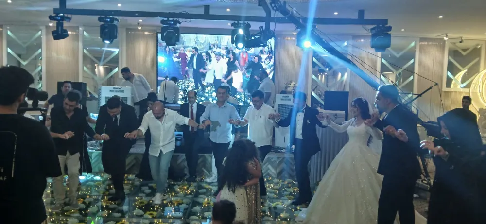 Düğüne katılan Siirtliler, hemşehri dayanışmasının güzel bir örneğini sergilerken, sahnede çekilen Siirt halayı salonda büyük beğeni topladı. Görüntülerde davetlilerin Siirt’e özgü halay figürleriyle coşkulu anlar yaşadığı gözlendi.