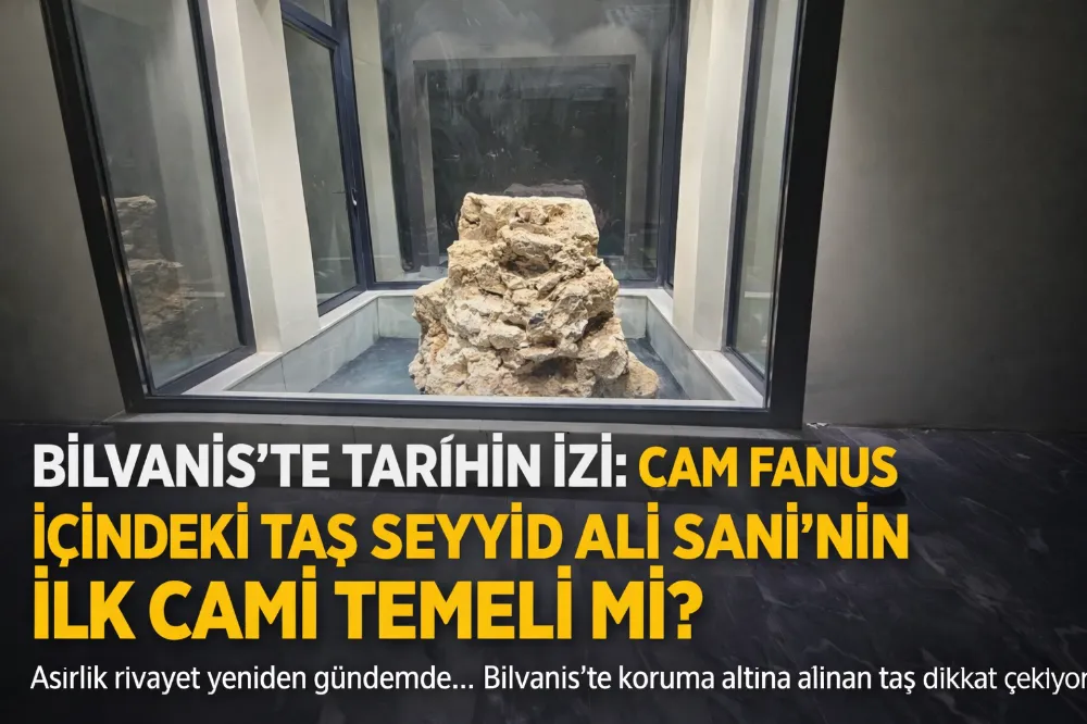 Bilvanis’te cam fanus içinde korunan bu taş gerçekten Seyyid Ali Sani Hazretleri’nin ilk cami temeline mi ait?