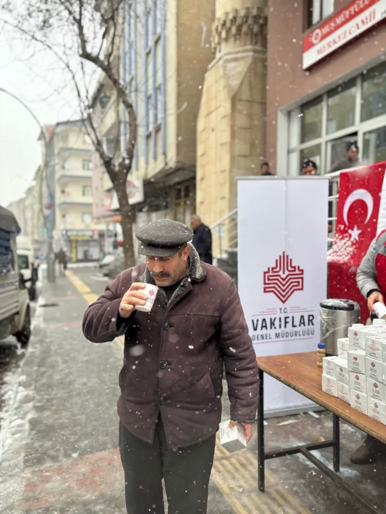 Bu kapsamda, başta Vakıf Camiilerimiz olmak üzere Bitlis Başhan Camii, Hakkari Ulu Camii, Muş Merkez Camii, Siirt Çarşı Camii, Şırnak Geylani Camii ve Van Boyalar Camii’nde vatandaşlarımıza sıcak salep ve kandil simidi ikramında bulunduk. Amacımız, bu mübarek geceyi kutlayan tüm kardeşlerimize küçük bir ikramda bulunarak; hem gönüllerinde yer edinmeyi hem de kandilin manevi atmosferini hep birlikte yaşamak oldu.
