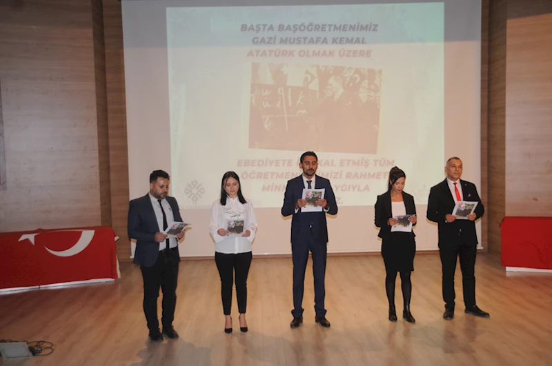 Saygı duruşu ve İstiklal Marşı'nın okunmasıyla başlayan törende konuşan İlçe Milli Eğitim Müdürü Şahan İke, öğretmenliğin önemine değinerek, tüm öğretmenlerin bu anlamlı gününü kutladığını söyledi.
