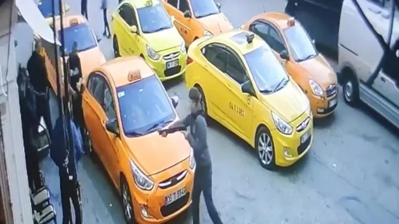 Güvenlik kamerasına yansıyan olayda taksi şoförü Mert D. ve onu ziyarete gelen babası Refik D. tüfekten çıkan saçmalarla yaralanırken, panikle kaçan taksi şoförleri Ahmet E. ve Taner Ş. de düşerek yaralandı.