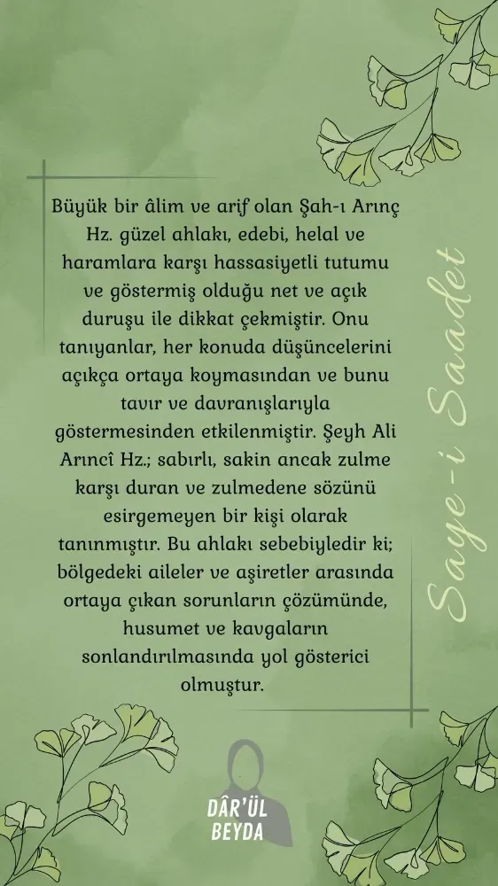 Aynı içerikte, Şah-ı Arınç Hazretleri’nin ailesinin bölgedeki dinî ve ilmî mirasın taşıyıcılarından biri olduğuna vurgu yapıldı.