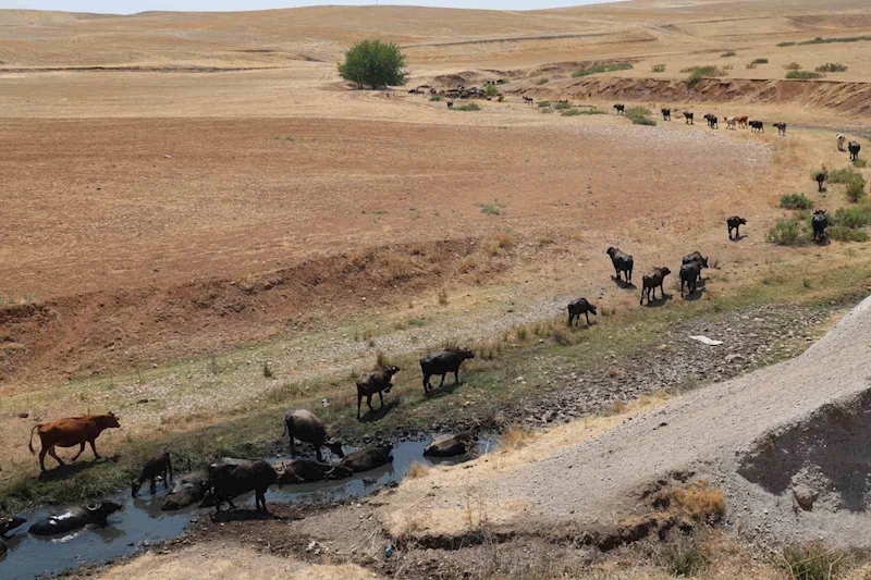 Diyarbakır’da mevsim normallerinin üzerinde seyreden hava sıcaklığı, etkisini gün geçtikçe daha da artırıyor. Silvan ilçesine bağlı kırsal Bağdere Mahallesi’nde sıcaktan bunalan mandalar, soluğu gölette alıyor. Büyükbaş hayvanlar arasında özellikle yaz mevsiminde daha fazla su ihtiyacı duyan mandalar, günde 5 saatlerini gölette geçiriyor.