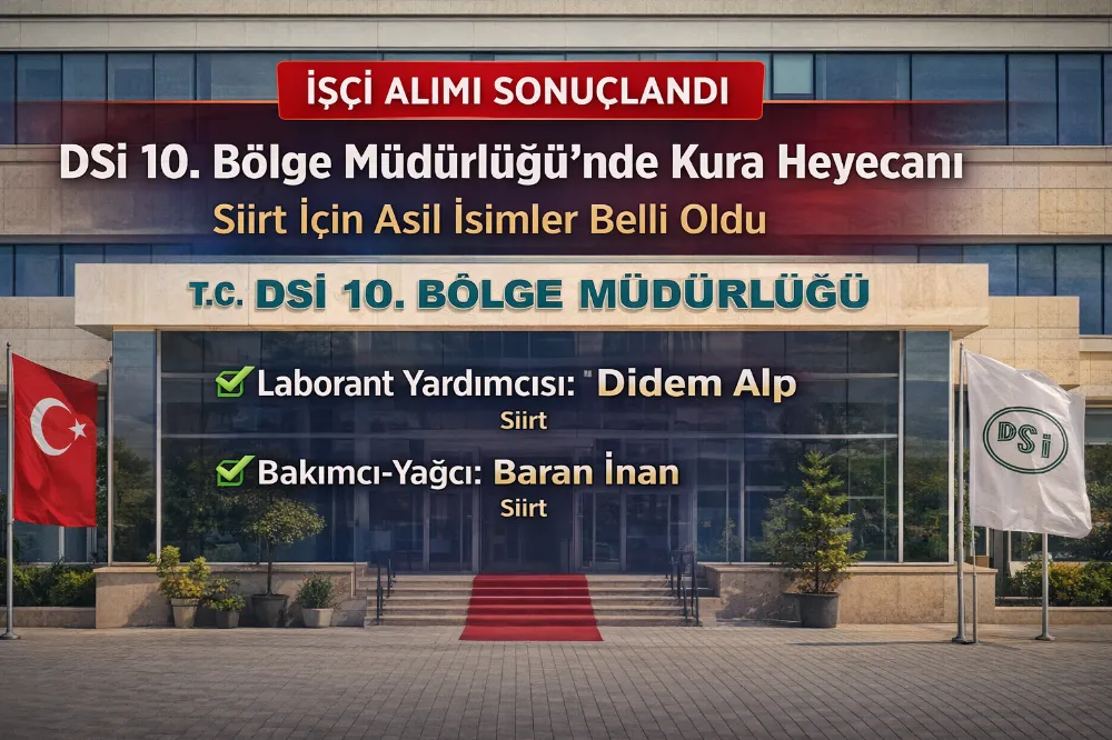 Devlet Su İşleri (DSİ) 10. Bölge Müdürlüğü tarafından Siirt’te istihdam edilmek üzere alınacak işçiler için gerçekleştirilen kura çekiminin sonuçları açıklandı.