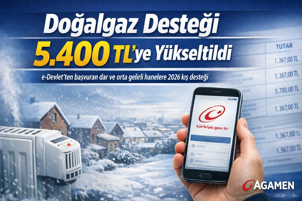 Isınma giderlerinin arttığı kış aylarında dar ve orta gelirli haneleri rahatlatacak yeni adım geldi. 2026 yılıyla birlikte doğalgaz tüketim desteği artırıldı, en soğuk illerde yıllık yardım 5.400 TL’ye kadar çıktı. Başvurular ise yalnızca e-Devlet üzerinden alınıyor.