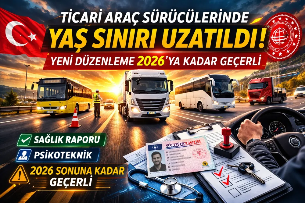 Yeni karar doğrultusunda ticari taşımacılık yapan sürücüler için uygulanan yaş sınırı düzenlemesinin 2026 yılının sonuna kadar geçerli olacağı ifade edildi. Bu süre boyunca gerekli şartları sağlayan sürücüler ticari araç kullanmayı sürdürebilecek.
