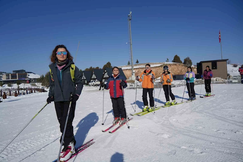 Dağ kayağı antrenörü ve milli sporcu Yeliz Esen öncülüğünde antrenmanlarını gerçekleştiren çocuklar hız, teknik ve taktik becerilerini geliştirmek için önce özel yapım malzemeyle karla kaplı dağda tırmandılar, ardından kayarak indiler.