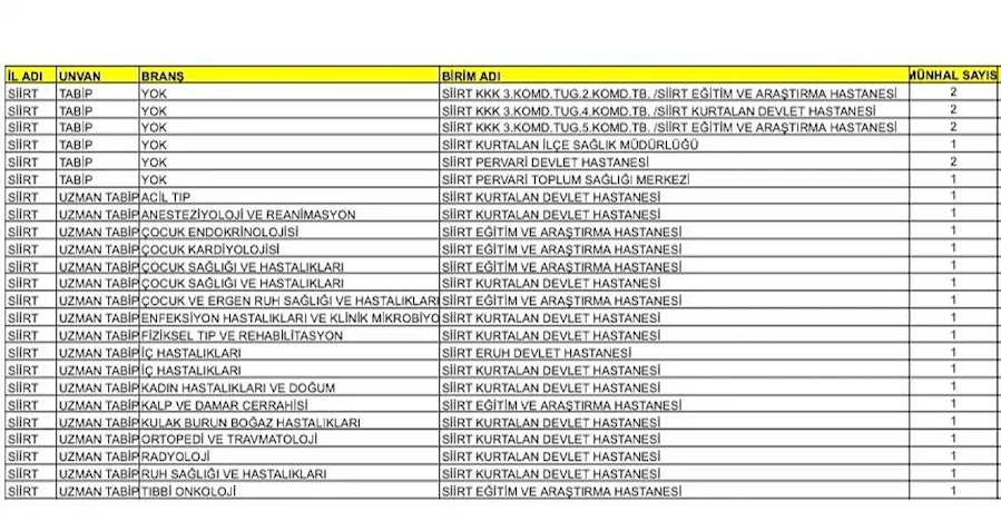 Eruh ’a sağlık alanında sevindirici haber! Sağlık Bakanlığı tarafından ilçede ihtiyaç duyulan branşta görev yapmak üzere 1 hekimin ataması gerçekleştirildi. Ataması yapılan hekim ; İç Hastalıkları branşında görev yapacak. Bu atamayla Eruh’un sağlık hizmeti sunumunda ihtiyaçları önemli ölçüde karşılanması bekleniyor. Eruh halkı, yeni atamanın sağlık hizmetlerinde kaliteyi artıracağına ve bölgeye önemli katkılar sağlayacağına inanıyor. Atanan doktorun en kısa sürede görevlerine başlaması bekleniyor.
