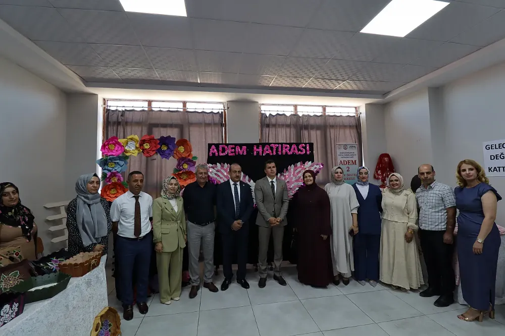 Protokol üyeleri sergi alanını gezerek kursiyerlerle sohbet etti. Kaymakam Meral, Hayat Boyu Öğrenme faaliyetlerinin bireysel gelişimin yanı sıra toplumsal fayda sağladığını belirtti.