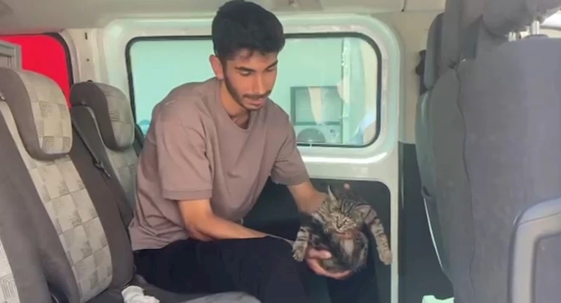 Aracını park ettiği yerden almaya giden sürücü, ön kaputtan seslerin geldiğini duydu. Kaput kapağını kaldıran sürücü, motor kısmına kedinin sıkıştığını anlayınca durumu itfaiyeye bildirdi.