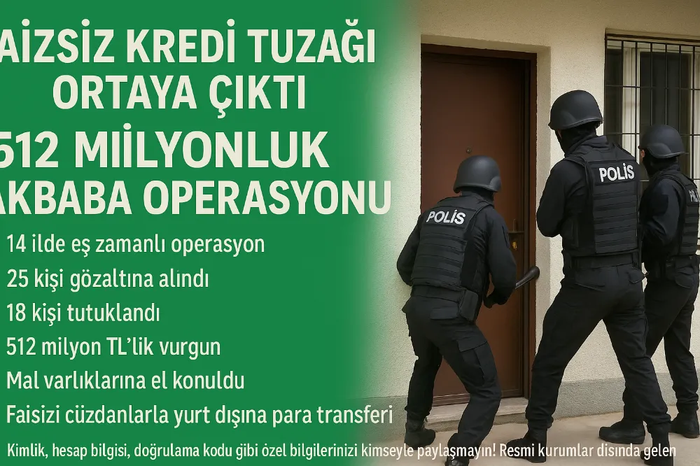 Diyarbakır merkezli 14 ilde düzenlenen dev dolandırıcılık operasyonunda 25 kişi gözaltına alındı. Kendilerini banka görevlisi gibi tanıtarak faizsiz kredi arayan vatandaşları tuzağa düşüren şüpheliler, tam 512 milyon liralık vurgun yaptı. Emniyetin 2 ay süren titiz çalışması sonucu 18 şüpheli tutuklandı, mal varlıklarına el konuldu.