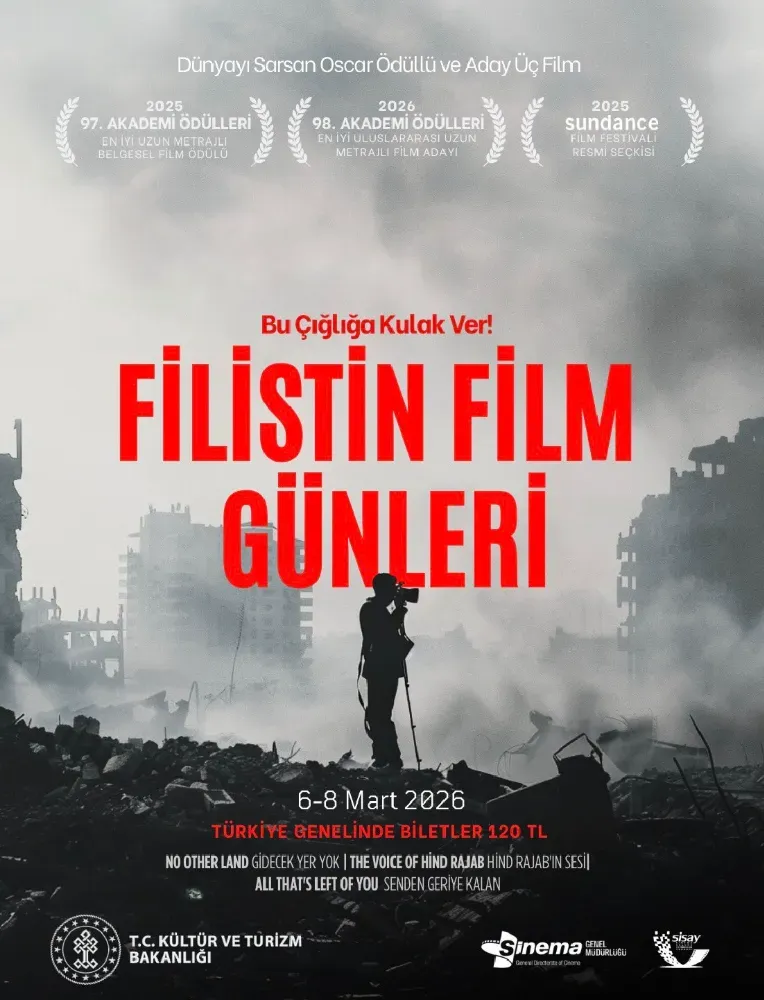 Kültür ve Turizm Bakanlığı Sinema Genel Müdürlüğü ile Sinema Salonları Yatırımcıları Derneği (SİSAY) iş birliğinde düzenlenen “Filistin Film Günleri”, Türkiye genelinde eş zamanlı olarak sinemaseverlerle buluşuyor.