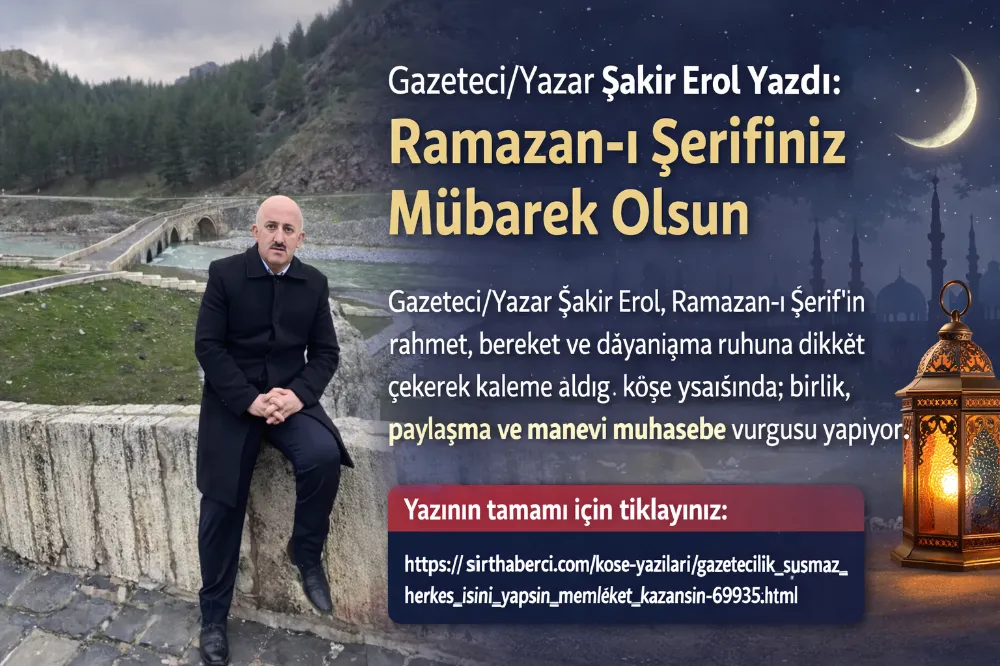 Gazeteci/Yazar Şakir Erol, Ramazan-ı Şerif’in rahmet, bereket ve dayanışma ruhuna dikkat çekerek kaleme aldığı köşe yazısında; birlik, paylaşma ve manevi muhasebe vurgusu yapıyor.