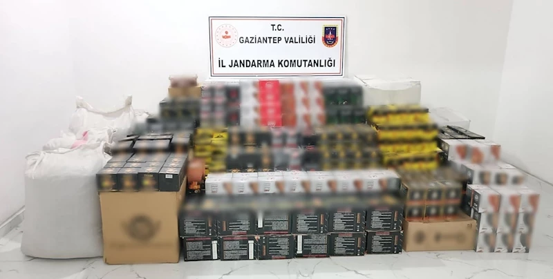 Gaziantep İl Jandarma Komutanlığı ve Cumhuriyet Başsavcılığı koordinesinde son bir hafta içerisinde kaçakçılıkla mücadeleye yönelik çok sayıda çalışma yapıldı. Çalışmalar çerçevesinde Şehitkâmil ilçesinde kaçakçılık yaptığı tespit edilen A.S. ve O.B. isimli şüpheli şahıslara ait ikametlerde ve araçlarda arama yapıldı. Aramalar neticesinde piyasa değeri 800 bin TL olan 2 ton 400 kilo nargile kömürü, 314 kilo nargile tütünü, 270 kilo kaçak çay, 42 bin 400 adet boş makaron ve bin 754 adet ambalaj ele geçirildi.