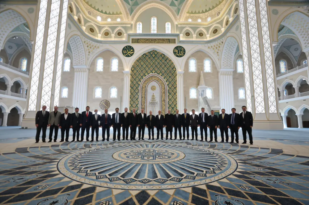 Ziyaret sırasında heyet, caminin geniş iç mekânını, kubbe mimarisini, hat sanatlarıyla süslenen mihrap bölümünü ve avlu düzenlemesini inceledi.