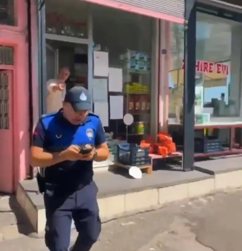 Bu sırada duruma tepki gösteren market işletmecisi şahıs, zabıta ekibini önce kovdu, sonra fiziki müdahale ile dışarı attı, ardından da "Şerefime seni vururum, seni vururum, silahımla vurmazsam namussuzum" diyerek tehdit etti. O anlar ise bir diğer zabıta memuru tarafından cep telefonu ile kaydedildi