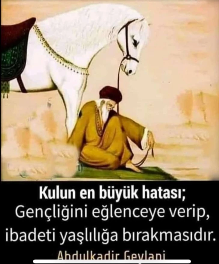 “Kulun en büyük hatası; gençliğini eğlenceye verip, ibadeti yaşlılığa bırakmasıdır.” – Abdulkadir Geylani