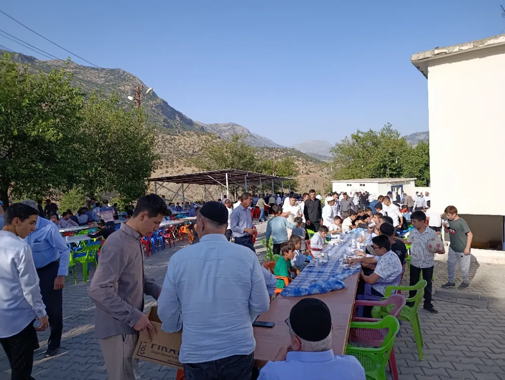 Mevlit sonrası kurulan sofralarda etli pilav, ayran, tatlı ve çeşitli yöresel ikramlar misafirlere sunuldu. Ardından meydanda kurulan sahnede yöresel halaylar çekildi, müzik eşliğinde coşku doruğa ulaştı. Düğün boyunca misafirlerle birebir ilgilenen Şeyh Ömer Solmaz ve aile büyükleri, konuklara teşekkür etti.