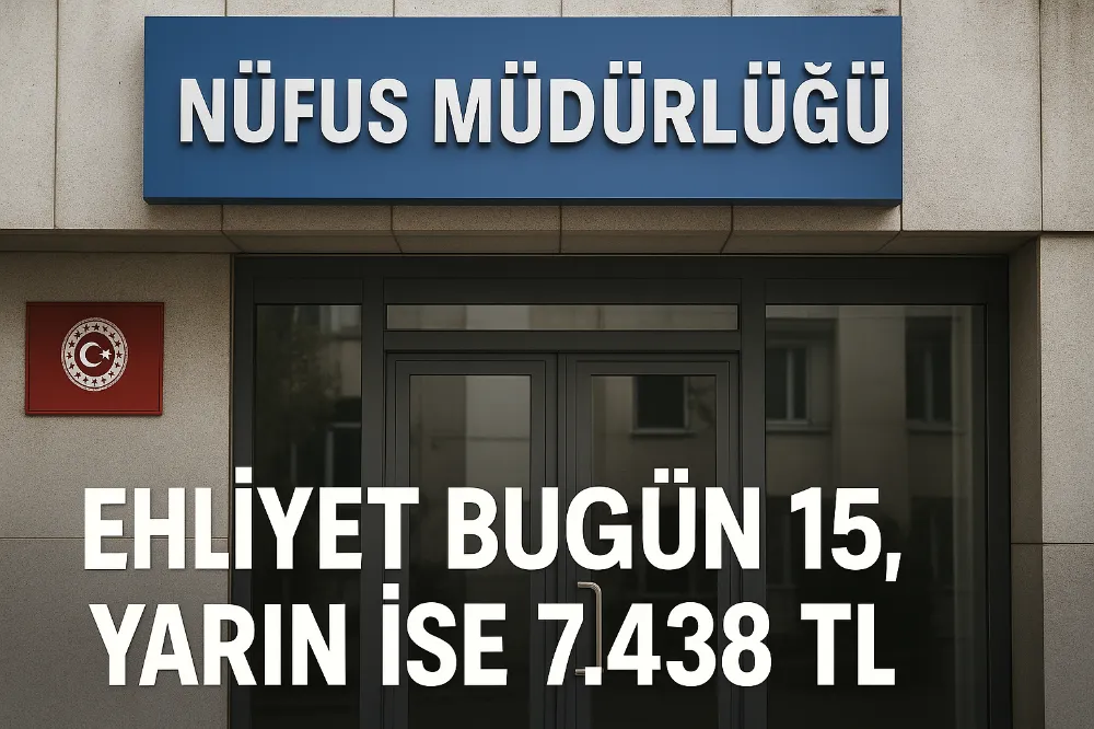 --Bugün, yalnızca 15 TL ödeyerek ehliyetinizi yeniletme imkânınız var. Yarın bu ücret 7.438 TL’ye çıkıyor. Süratle randevu alarak işlem yapmak, hem maddi tasarruf hem de olası cezalardan kaçınmak için kritik önem taşıyor.
