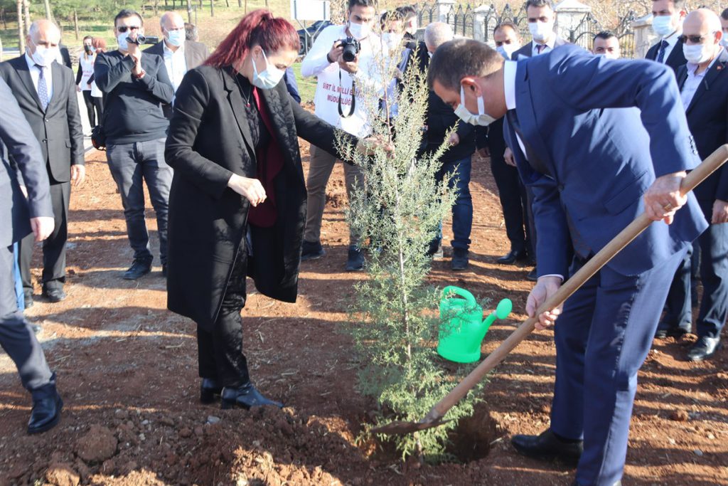 Siirt Valisi Osman Hacıbektaşoğlu, eşi Güney Hacıbektaşoğlu, İl Milli Eğitim Müdürlüğü, Tarım ve Orman Bakanlığının uyguladığı “Geleceğe Nefes Ol” projesi kapsamında “Her Öğretmen Bir Fidan, 5 Bin Öğretmene 5 Bin Fidan” projesi kapsamında düzenlenen fidan dikim törenine katıldı.