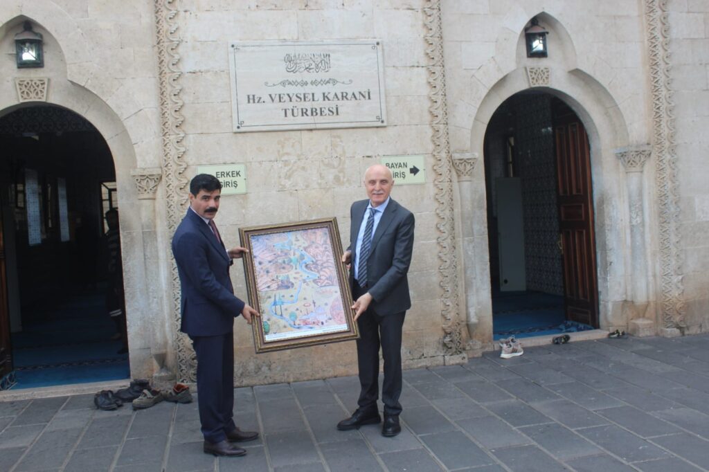 İlçe ziyaretine ilk olarak İlçemizin inanç turizmi açısından büyük öneme sahip Veysel Karani Türbesini ziyaretiyle başlayan Erdil, Güler yüz ve sıcak muhabbetle türbe avlusunda bulunan vatandaşlarla sohbet etti.