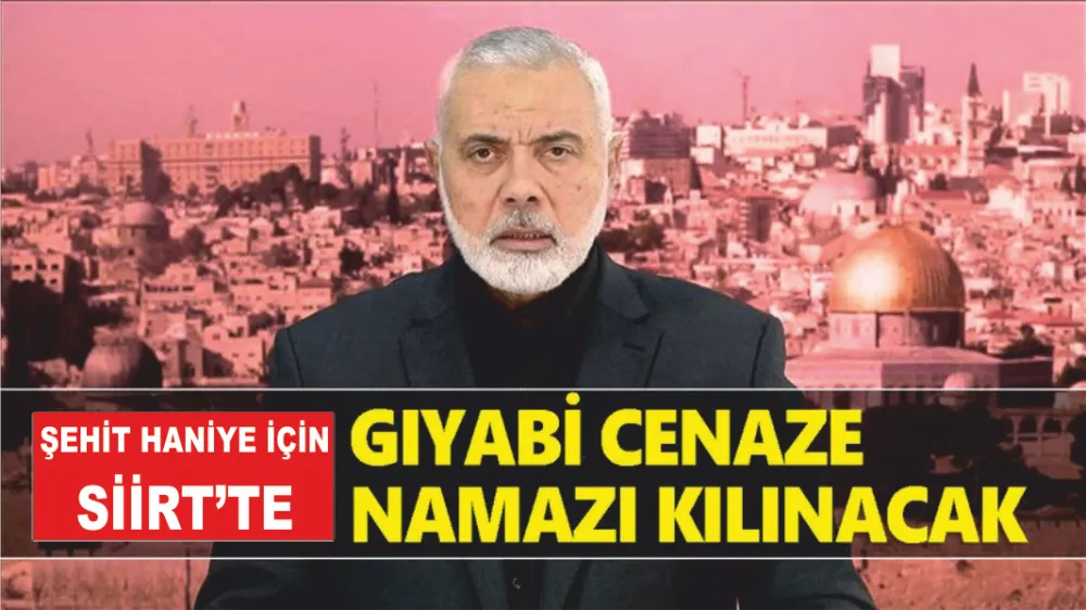 Siirt İl Müftüsü Şakir Pinal sosyal medya hesabından Siirt’e İsmail Haniye İçin Gıyabi Cenaze Namazı Cuma Günü kılınacağını duyurdu. İl Müftüsü Pinal açıklamalarında; Değerli kardeşlerim ,Merhum İsmail Haniye ile ilgili olarak kılacak olduğumuz gıyabi cenaze namazı, cenaze işlemlerinin henüz tamamlanmamış olması nedeniyle bugün yerine cuma namazı sonrasına ertelenmiştir. Dolayısıyla, bugün belirlenen yerlerde sadece dua edilecektir. Gıyabi cenaze namazı kılmak için tüm kardeşlerimizi davet ediyoruz. Sözlerine yer verdi.