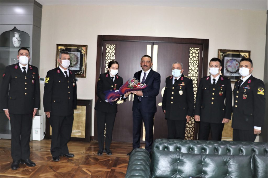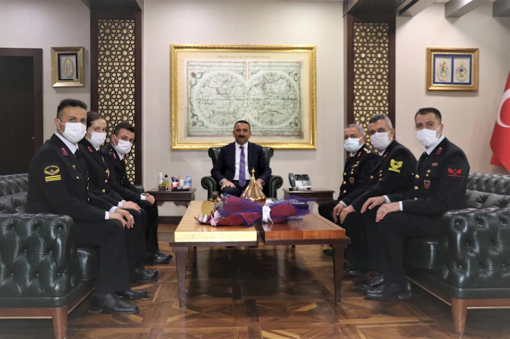 Jandarma Teşkilatı'ndan Vali Hacıbektaşoğlu’na 182. Kuruluş Yıldönümü Ziyareti Siirt Valisi ve Belediye Başkan Vekili Osman Hacıbektaşoğlu, Jandarma Teşkilatı’nın 182’inci kuruluş yıldönümü münasebetiyle İl Jandarma Komutan Vekili Albay Mevlüt Yıldız ve beraberindeki teşkilat mensuplarını makamında kabul etti. Ziyaretten duyduğu memnuniyeti ifade eden Vali Hacıbektaşoğlu, Jandarma Teşkilatı’nın ülkemizin en köklü kurumlarından biri olduğunu belirterek, başta terörle mücadele olmak üzere tüm suç örgütleri ile mücadelede gösterdikleri fedekarlığın her türlü takdirin üzerinde olduğunu dile getirdi. Jandarma Teşkilatı’nın 182. kuruluş yıldönümünü kutlayan Vali Hacıbektaşoğlu, ilimizdeki huzur ve güven ortamının tesisinde gösterdikleri gayret ve başarılı çalışmalarından dolayı tüm teşkilat mensuplarına teşekkür etti. Ziyaret, İl Jandarma Komutan Vekili Yıldız’ın Vali Hacıbektaşoğlu’na faaliyetleri hakkında bilgiler vermesiyle sona erdi. Basın Bülteni