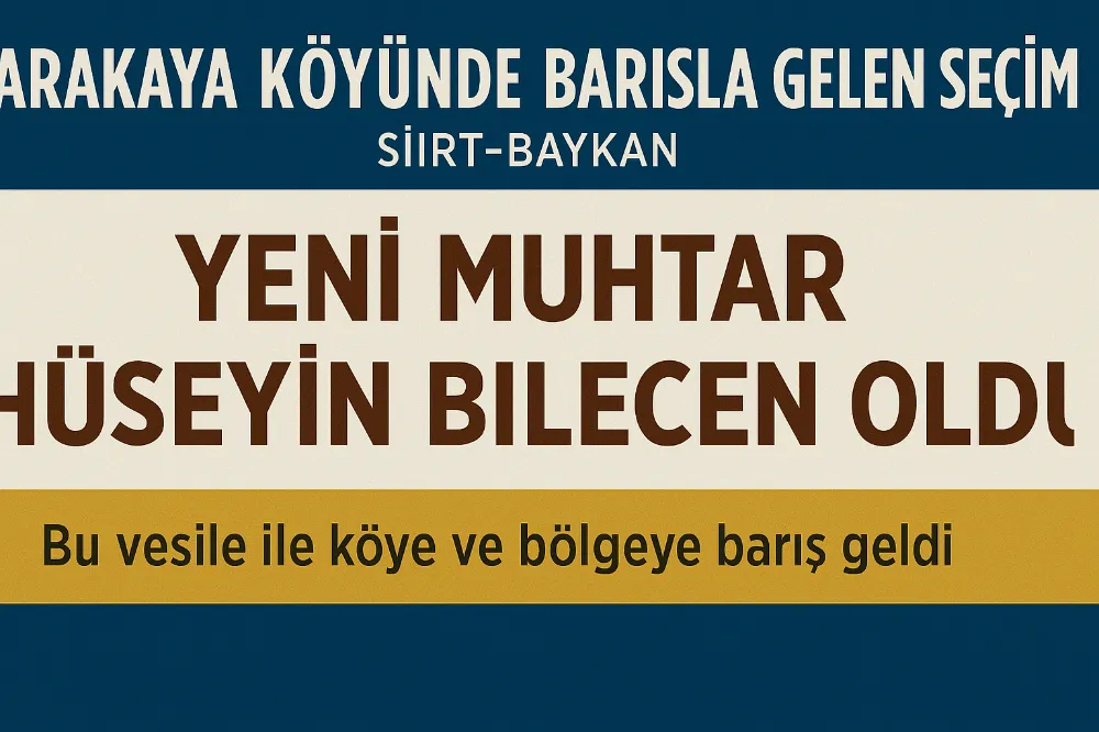 Karakaya Köyü’nde yaşanan bu gelişme, bölgedeki diğer yerleşim yerlerine de örnek teşkil edecek nitelikte. Toplum önderlerinin desteğiyle sağlanan uzlaşı, yerel düzeyde barışçıl çözümün mümkün olduğunu bir kez daha gösterdi. Yeni muhtar Hüseyin Bilecen’in göreve başlamasıyla birlikte köyde hizmet, istikrar ve dayanışma temelli yeni bir dönemin başladığı ifade ediliyor.