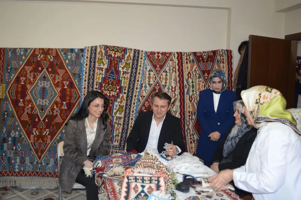 Aile Destek Merkezinde, Kilim, nakış,Tel kırma, Kuaför, dikiş kursu, el sanatları kursu, triko kursu, kuaför kursunu ve diğer geleneksel el sanatları kurslarını ziyaret eden Kaymakam Özcan, kurslara katılan kadınların, mesleki eğitimin ardından ilgili kurumların verdiği hibe ve kredilerle, kendi iş yerini açabilme imkanı bulduğunu ifade etti.