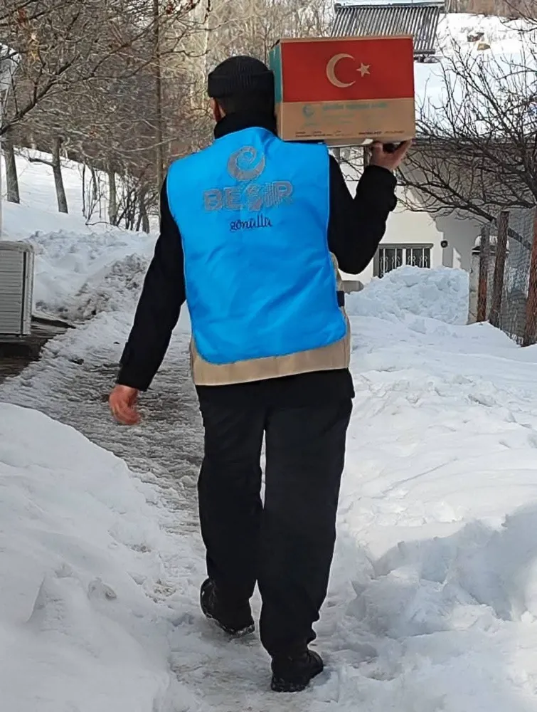 Kar ve soğuğa aldırış etmeden yürütülen yardım faaliyetleri, özellikle ulaşımı güç kırsal bölgelerde yaşayan aileler için hayati önem taşıyor.