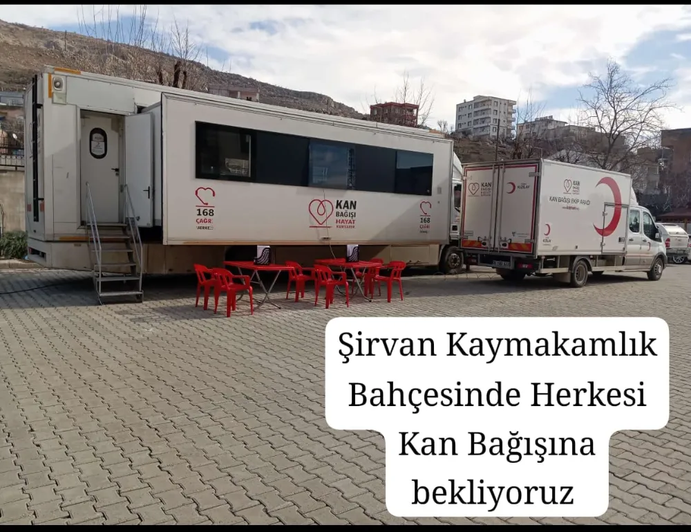 Türk Kızılay tarafından organize edilen mobil kan bağış aracı, Şirvan Kaymakamlığı bahçesinde konuşlandırılarak vatandaşların hizmetine sunuldu.