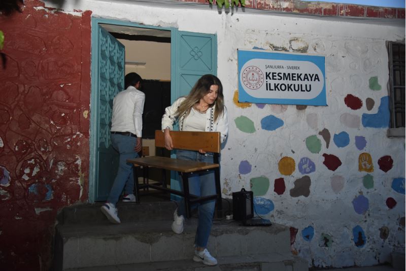 ŞANLIURFA (AA) - CUMA SARI - Şanlıurfa'nın Siverek ilçesinde köy okulunda öğretmenlik yapan İnci Görgün, öğrencileri ve babaları için okul bahçesini sinema salonuna dönüştürdü.