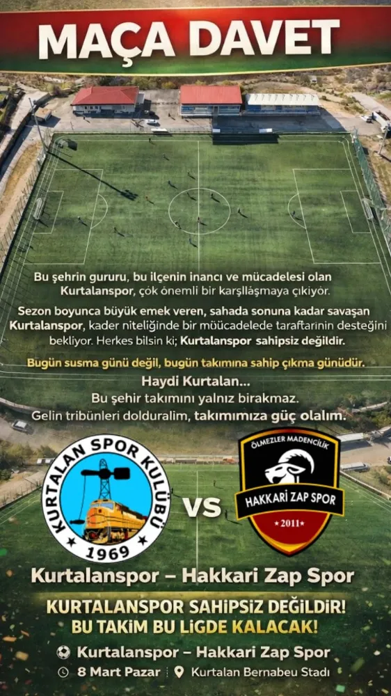 Şimdi gözler Pazar günü Kurtalan Bernabeu Stadı’nda olacak. Tüm Kurtalan halkının tribünlerde buluşması beklenirken, sarı-siyahlı ekip sahaya yalnız değil, ilçesinin gücüyle çıkmak istiyor.