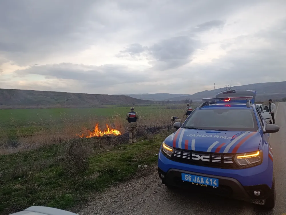 Yangın ihbarının ardından jandarma ekipleri hızla olay yerine intikal ederek çevrede güvenlik önlemi aldı.