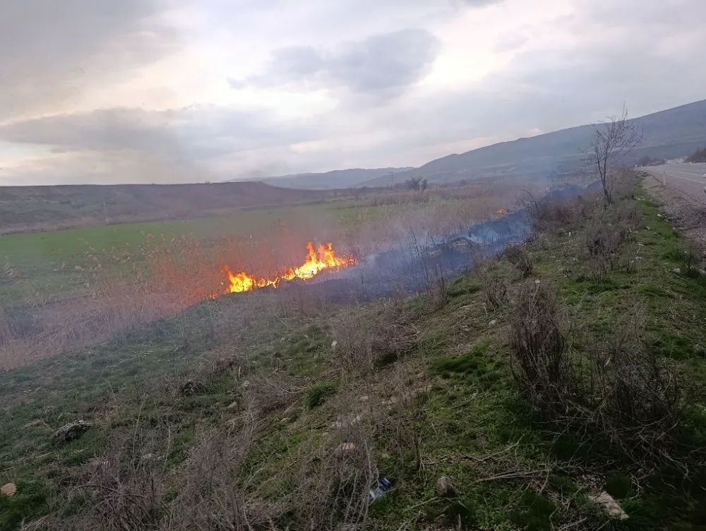 Yangının kuru otluk alanda başlaması ve rüzgârın etkisiyle yayılma ihtimali, özellikle hasat dönemine yaklaşan buğday ekili araziler açısından risk oluşturuyor.