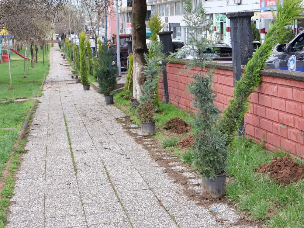 Belediye Eşbaşkanlarının koordinasyonunda Park ve Bahçeler Müdürlüğü ekipleri tarafından yürütülen çalışmalar kapsamında, parklar çınar ağaçları, dört mevsim yeşilliğini koruyan çam türleri ve çeşitli süs bitkileriyle donatılıyor.