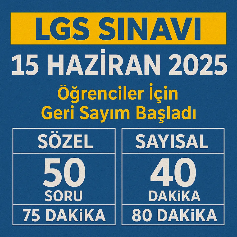 Milli Eğitim Bakanlığı, Liselere Geçiş Sistemi (LGS) kapsamındaki merkezi sınavın 15 Haziran 2025’te yapılacağını duyurdu.