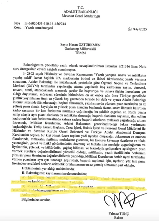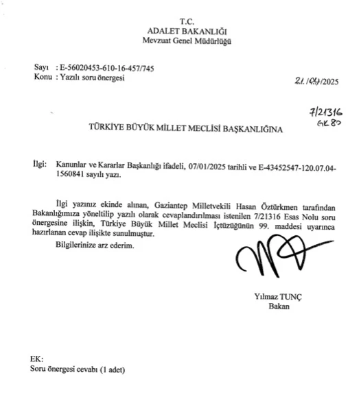 Milletvekili Hasan Öztürkmen, konunun takipçisi olduğunu belirterek, “Adalet dağıtmakla görevli bir bakanlık, kendi personeline dahi adalet sağlayamıyor. Bu hukuksuzluk bitene kadar mücadelemizi sürdüreceğiz” dedi.