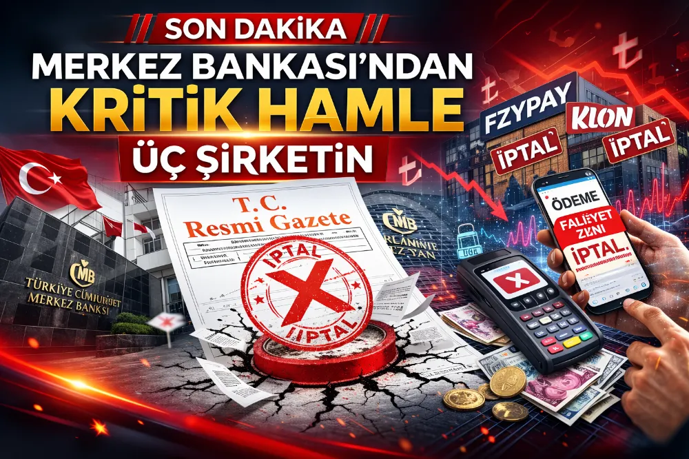 Türkiye Cumhuriyet Merkez Bankası (TCMB), ödeme ve elektronik para sektöründe faaliyet gösteren üç şirketin izinlerini iptal etti. Karar, Resmî Gazete’de yayımlanarak yürürlüğe girdi.