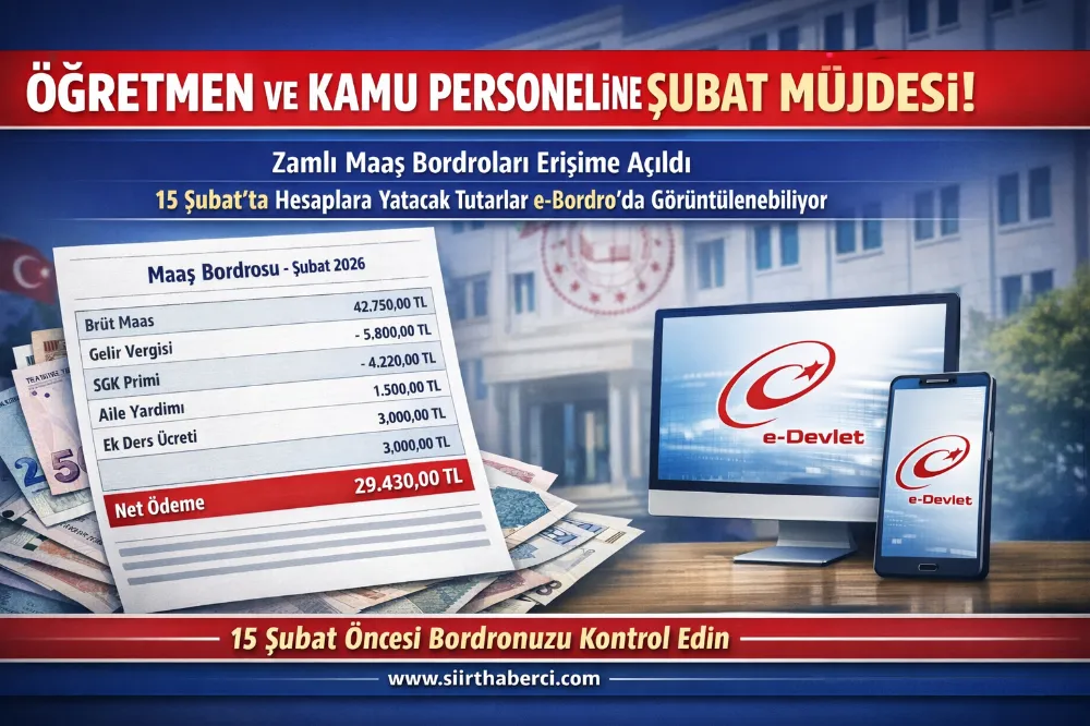 Dijital bordro sistemi sayesinde kamu çalışanları artık maaş detaylarına hızlı, güvenli ve şeffaf biçimde ulaşabiliyor. Şubat ayı itibarıyla uygulanacak zamlı maaşların 15 Şubat’ta hesaplara yatırılması beklenirken, bordroların önceden erişime açılması sürecin daha sağlıklı yürütülmesine katkı sağlıyor.