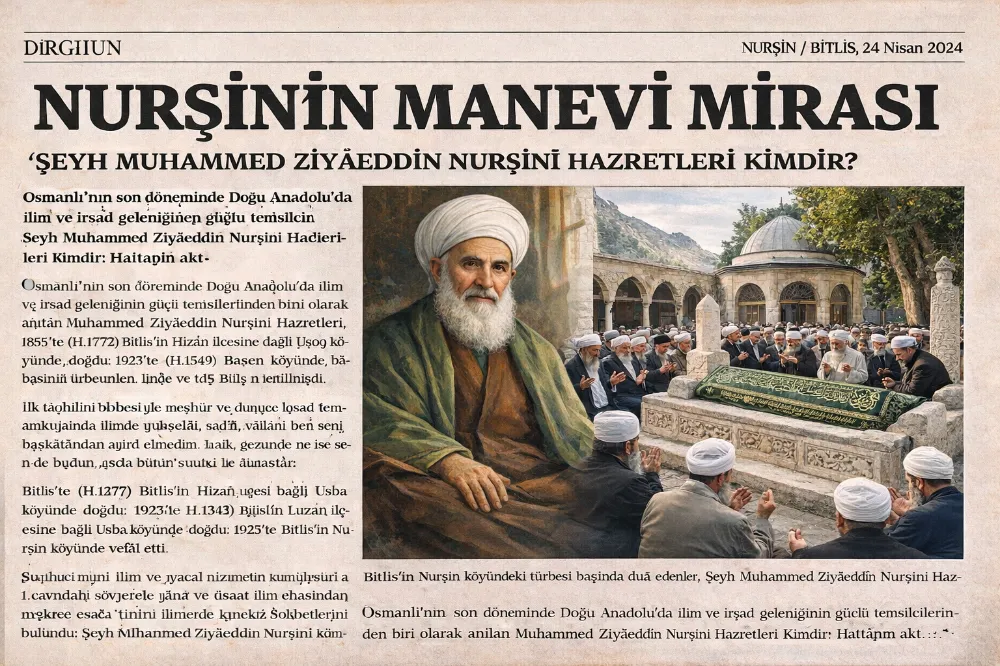 Osmanlı’nın son döneminde Doğu Anadolu’da ilim ve irşad geleneğinin güçlü temsilcilerinden biri olarak anılan Muhammed Ziyâeddîn Nurşînî Hazretleri; Bitlis’in Hizan ilçesine bağlı Usba köyünde dünyaya geldi, ömrünün son durağı olan Nurşin’de babasının türbesinin yanında ebedî istirahatgâhına uğurlandı. Zâhirî ilimlerde “mollalık pâyesi”ne yükselen, tasavvuf yolunda ise sohbet ve hizmet merkezli bir terbiyeyi esas alan Nurşînî Hazretleri; yetiştirdiği talebeler, mektupları ve bıraktığı manevi izlerle bölge tarihinin önemli isimleri arasında gösteriliyor.