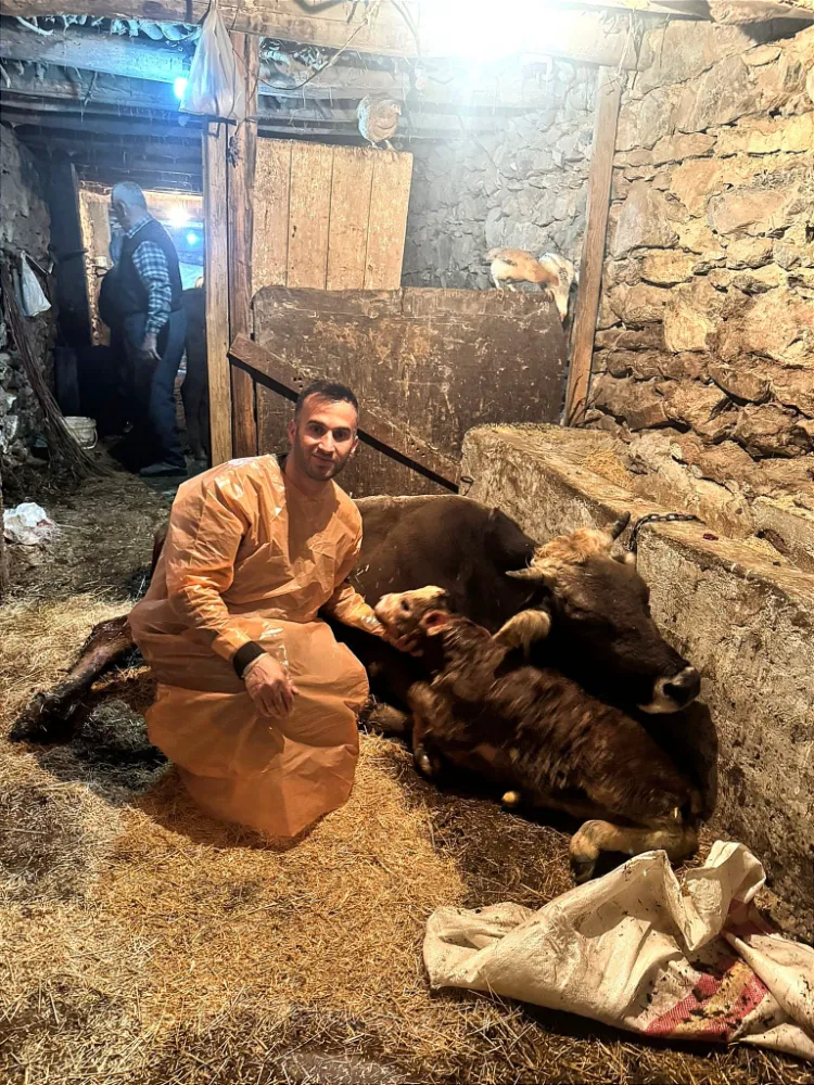 Veteriner Hekim Abdulvahap Yılmaz’ın başarılı müdahalesi sayesinde hem anne inek hem de buzağı sağlıklı bir şekilde kurtarıldı.