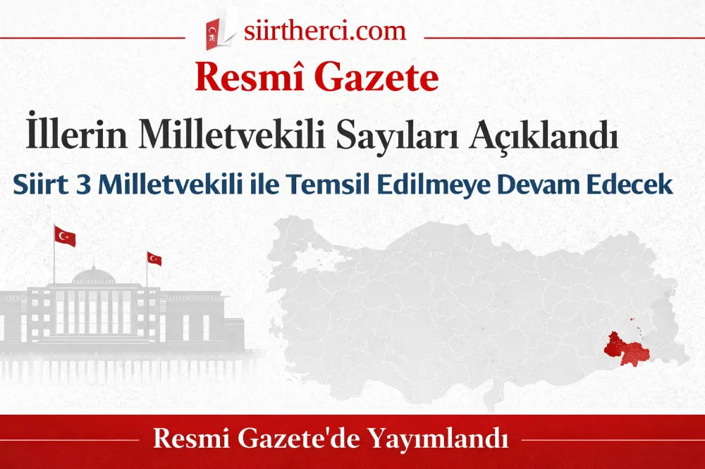 Nüfus verileri dikkate alınarak yapılan yeni dağılıma göre birçok ilde milletvekili sayılarında değişiklik yaşanırken, Siirt’in milletvekili sayısı 3 olarak korunmaya devam etti.