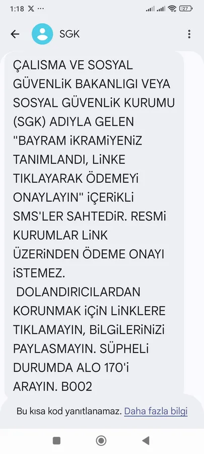 SGK tarafından yapılan uyarılarda da vatandaşların bu tür mesajlara kesinlikle itibar etmemesi gerektiği ifade ediliyor.