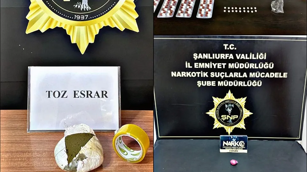 Şanlıurfa'da uyuşturucu operasyonunda gözaltına alınan 10 zanlıdan 9'u tutuklandı. Şanlıurfa Emniyet Müdürlüğü Narkotik Suçlarla Mücadele Şube ekiplerince, uyuşturucuyla mücadele çalışmaları kapsamında kent merkezi ile Viranşehir, Suruç, Siverek ve Akçakale ilçelerinde belirlenen adreslere operasyon düzenlendi. Yapılan aramalarda, 3 kilo 342 gram esrar, eroin ve sentetik uyuşturucu, 79 hap ve 2 tabanca ele geçirildi. Operasyonda 10 şüpheli gözaltına alındı. Emniyetteki işlemlerinin ardından adliyeye sevk edilen zanlılardan 9'u tutuklandı, 1'i ise serbest bırakıldı.