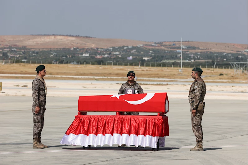 Şehit Şimşek'in naaşı cenaze aracıyla Gaziantep Havalimanı'na getirildi.